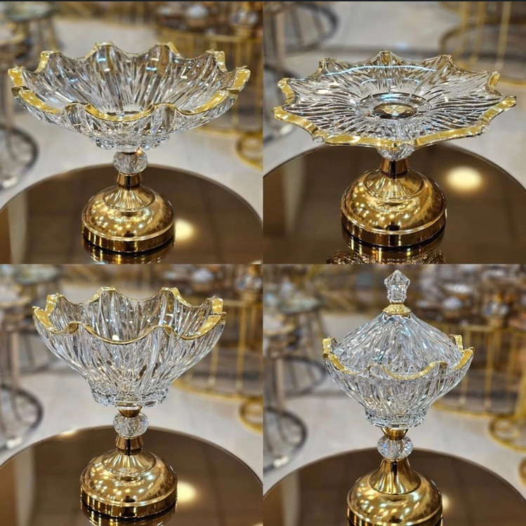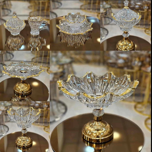 شامل: میوه خوری پایه فلز و شیرینی خوری پایه فلز و کاسه اجیل پایه فلز و شکلات پایه فلز و پیاله وپیش دستی میباشد