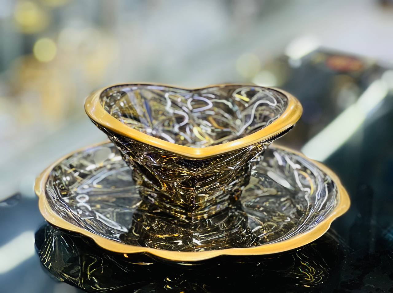 سرویس پذیرایی بوگاتی شامپاینی با لبه طلایی پایه برنج یک کار زیبا و جذاب با قیمت عالی میباشد که شامل